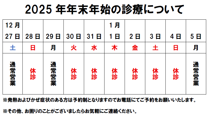 2025年 年末年始診療について